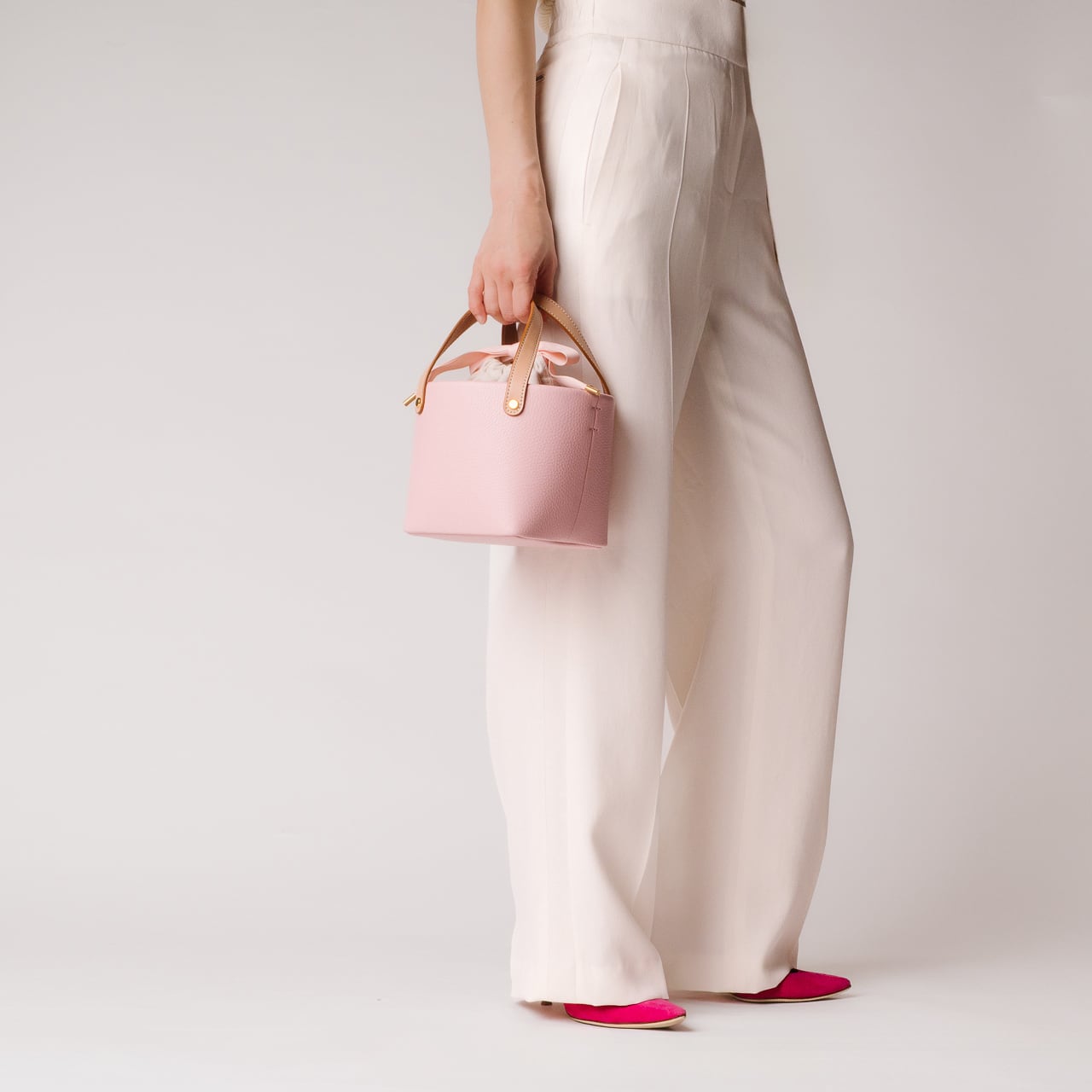 見た目の美しさだけでなく、使いやすさも大切に。装いに強く主張しすぎず、手もとにさりげない品を添えてくれるバッグです。